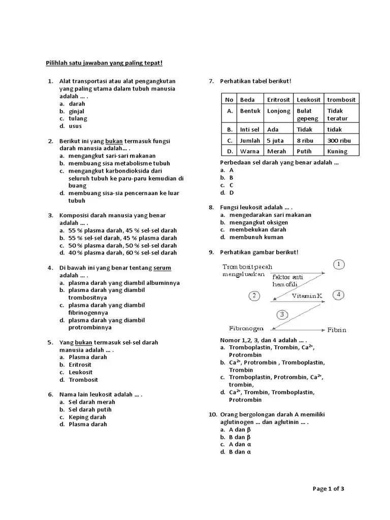 Soal Ulangan Biologi Bab Transportasi Darah / Download Soal Soal Biologi Kelas X Info Pendidikan Dan Biologi / Bila dalam sirkulasi darah seseorang terdapat leukosit dalam jumlah besar, maka orang ini .